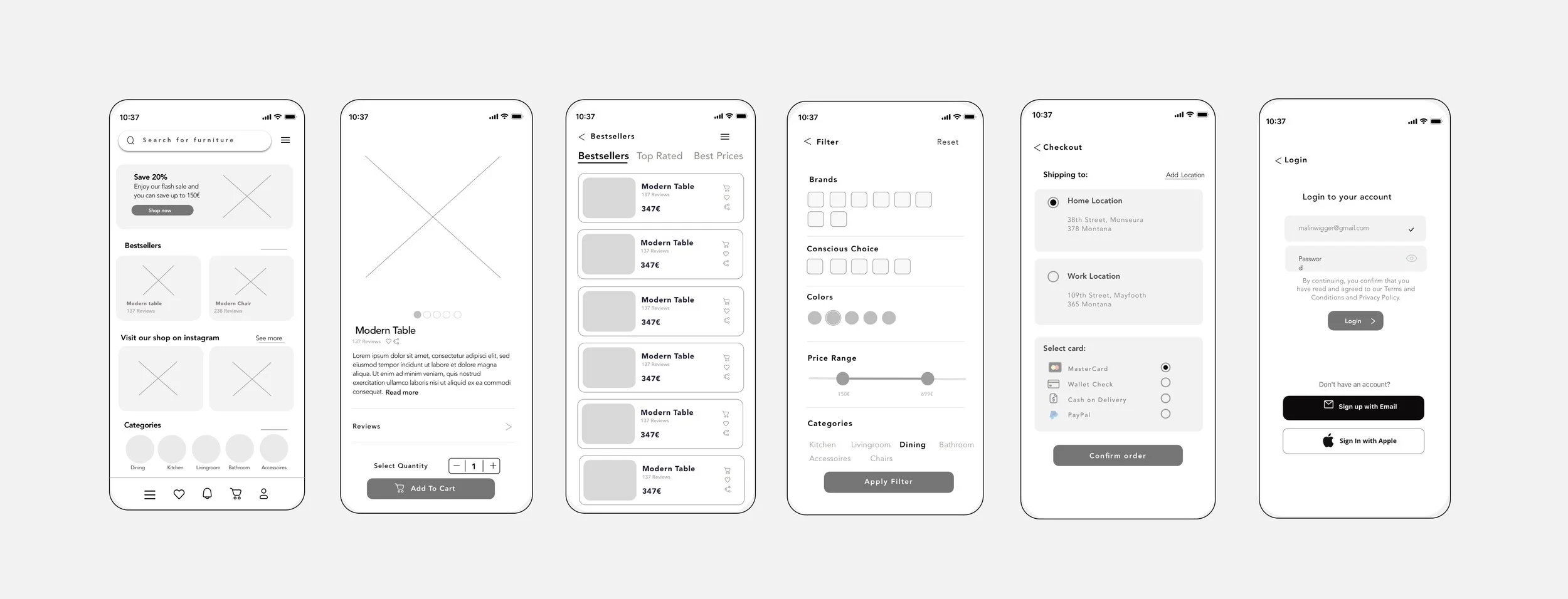 Here some of the first wireframes that demostrates the design thinking aligned with user research.