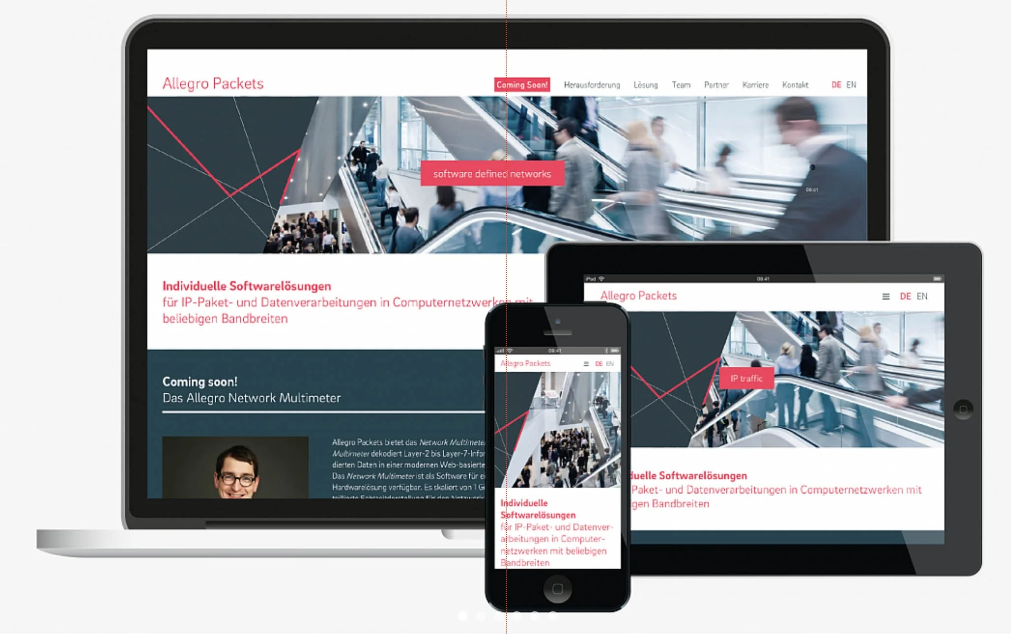 The redesign of the website (Desktop & Mobile) focuses on Allegro packets’ core competence: improving network quality. The tools for quickly finding network errors now get more space than before. At the same time, the editorial content is now placed more in the centre through a clear division and structure and is interlinked with the service areas of the website. In the product display, the information is presented in a much more reduced and tidy manner, and carry bags enable very intuitive operation while travelling. Photographer Janis Berger, Web Developer C2 Media production, Visual Identity Sehsam Acency